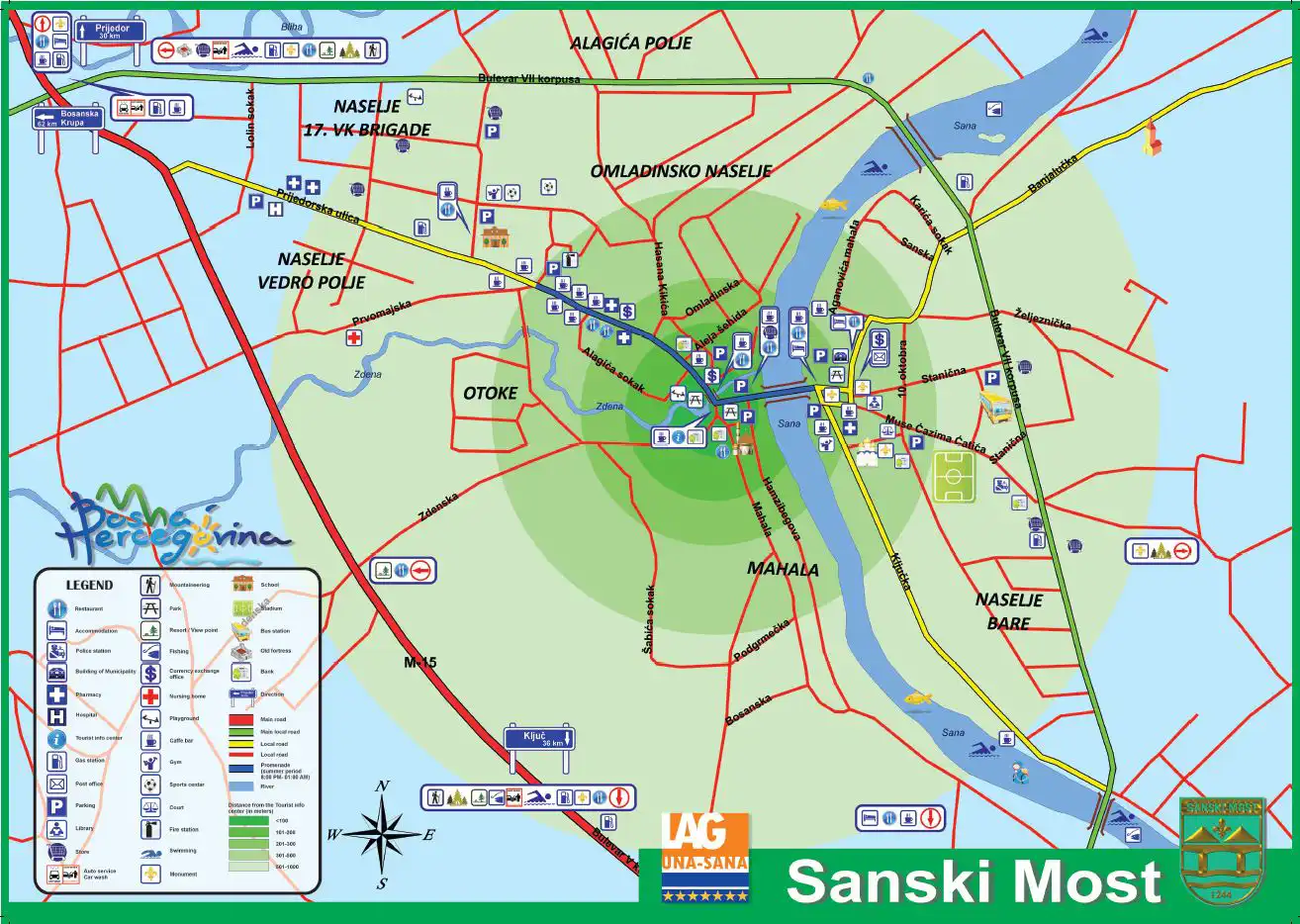 Mapa grada je vaš brzi vodič kroz Sanski Most — ulice, ustanove, kulturni spomenici, parking i javne usluge na jednoj karti. Koristite pretragu (naziv ulice/objekta) i uključite slojeve koji vas zanimaju (saobraćaj, institucije, turističke tačke).